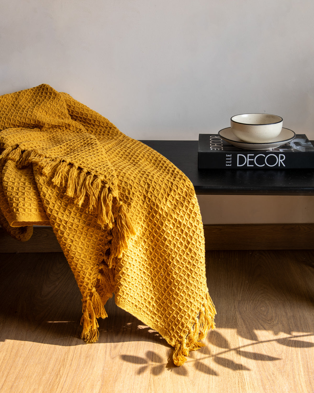 Transform your seating with this luxurious all-yellow throw, designed to elevate any sofa or chair with sophisticated style. The rich, vibrant hue adds warmth and visual interest while providing practical comfort for lounging. Perfect for layering over furniture, this elegant piece combines aesthetic appeal with everyday functionality, making it an essential accessory for refined interiors. Drape it casually for an effortlessly chic look or arrange it precisely for polished elegance.