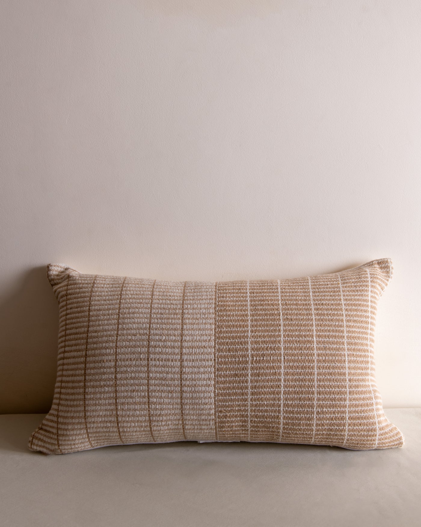 Beige & White Strips Woven Cushion Cover, 12 Inch x 20 Inch